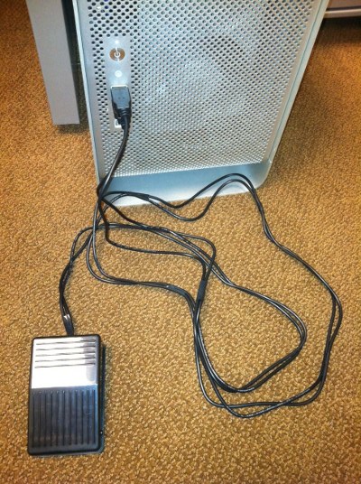 大家在平日里一定要多使用 Vim 编辑器,一旦把 Vim 的各种命令练熟,后面在编辑配置文件时,效率就会有很大的提升。在 2011 年,有一位名为 Aleksandr Levchuk 的极客,他就为了追求极致的效率,发起了一个名为 Vim Clutch 的实验项目(见图 4-3)。他买了一对类似于汽车油门和刹车的离合器,改装后再用 USB 与电脑相连,左脚踩刹车是进入编辑模式(i),右脚踩油门是保存文件(wq!)。他对 Linux 和 Vim 的热爱真是强大!