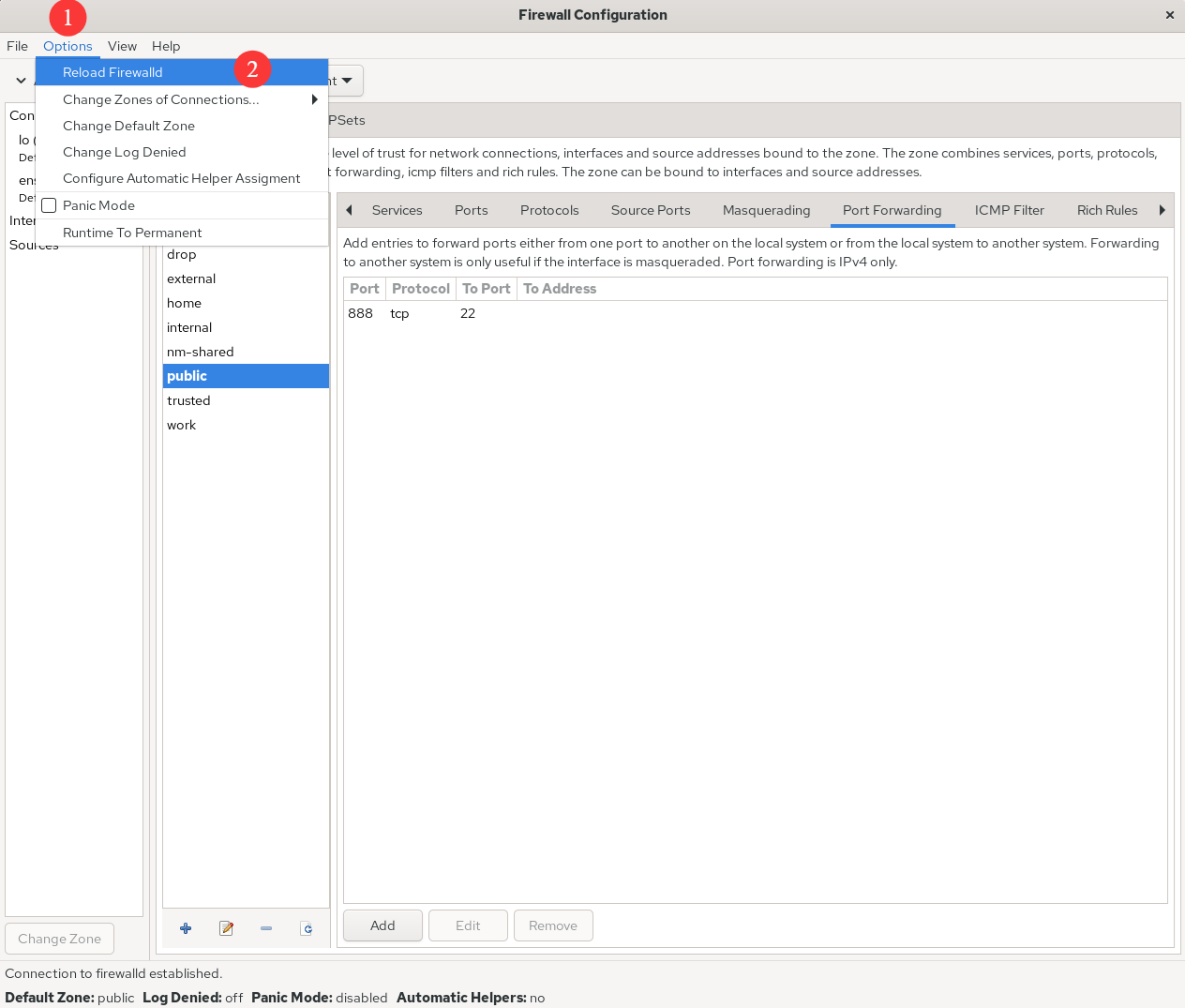 但是,永久生效模式有一个“不近人情”的特点,就是使用它设置的策略只有在系统重启之后才能自动生效。如果想让配置的策略立即生效,需要手动执行 firewall-cmd --reload 命令。