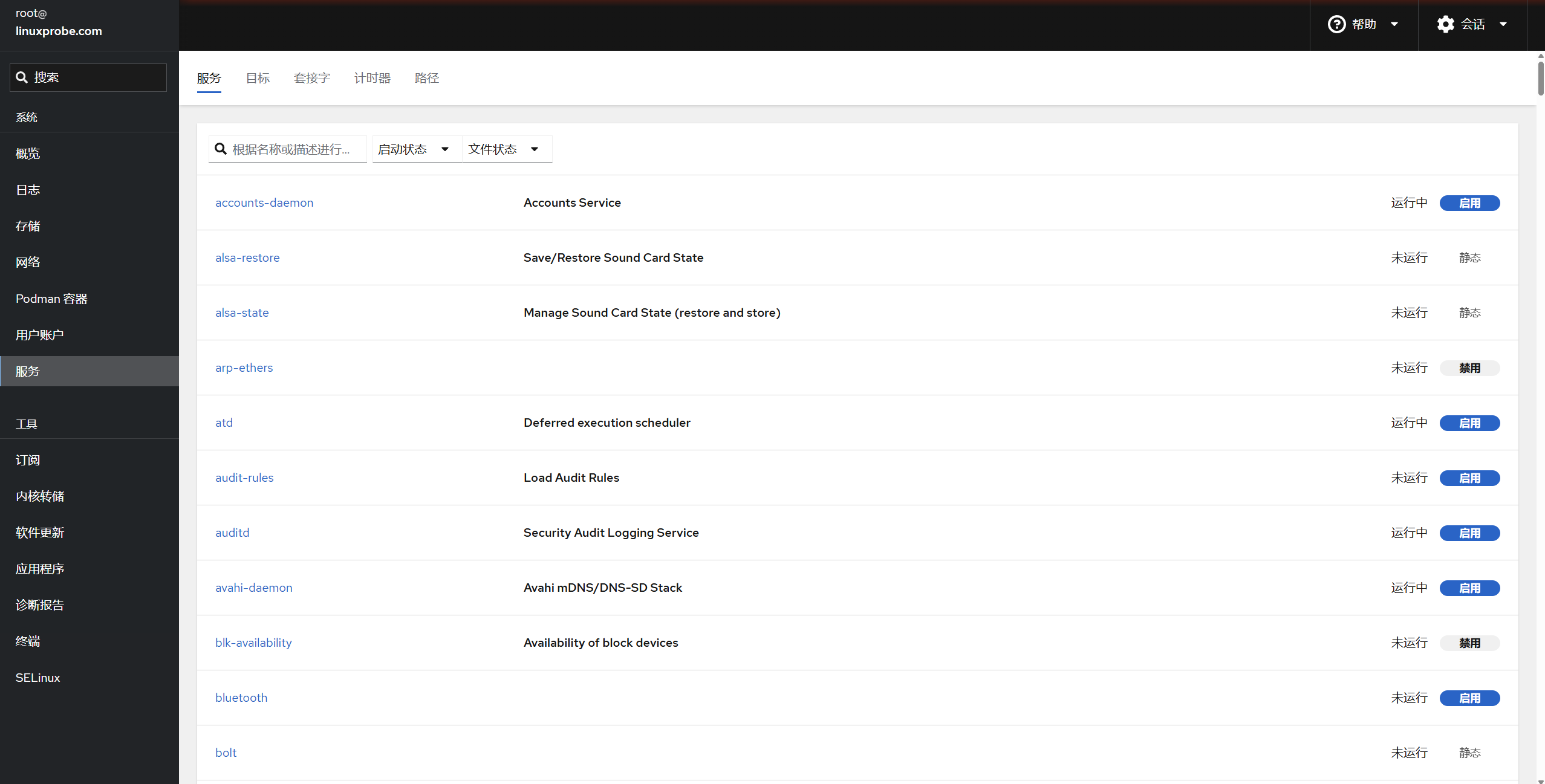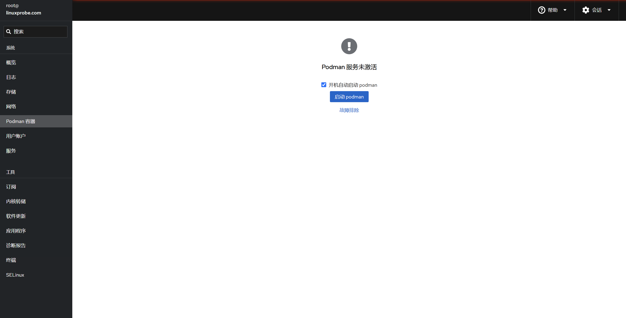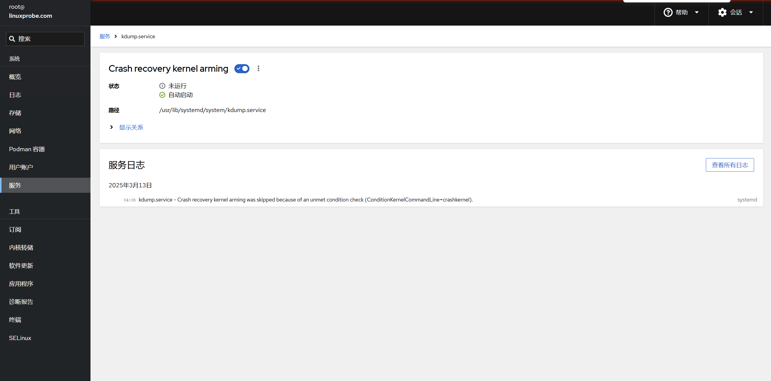 但是Cockpit 服务程序没有自动运行,需要将它开启并加入开机启动项中: