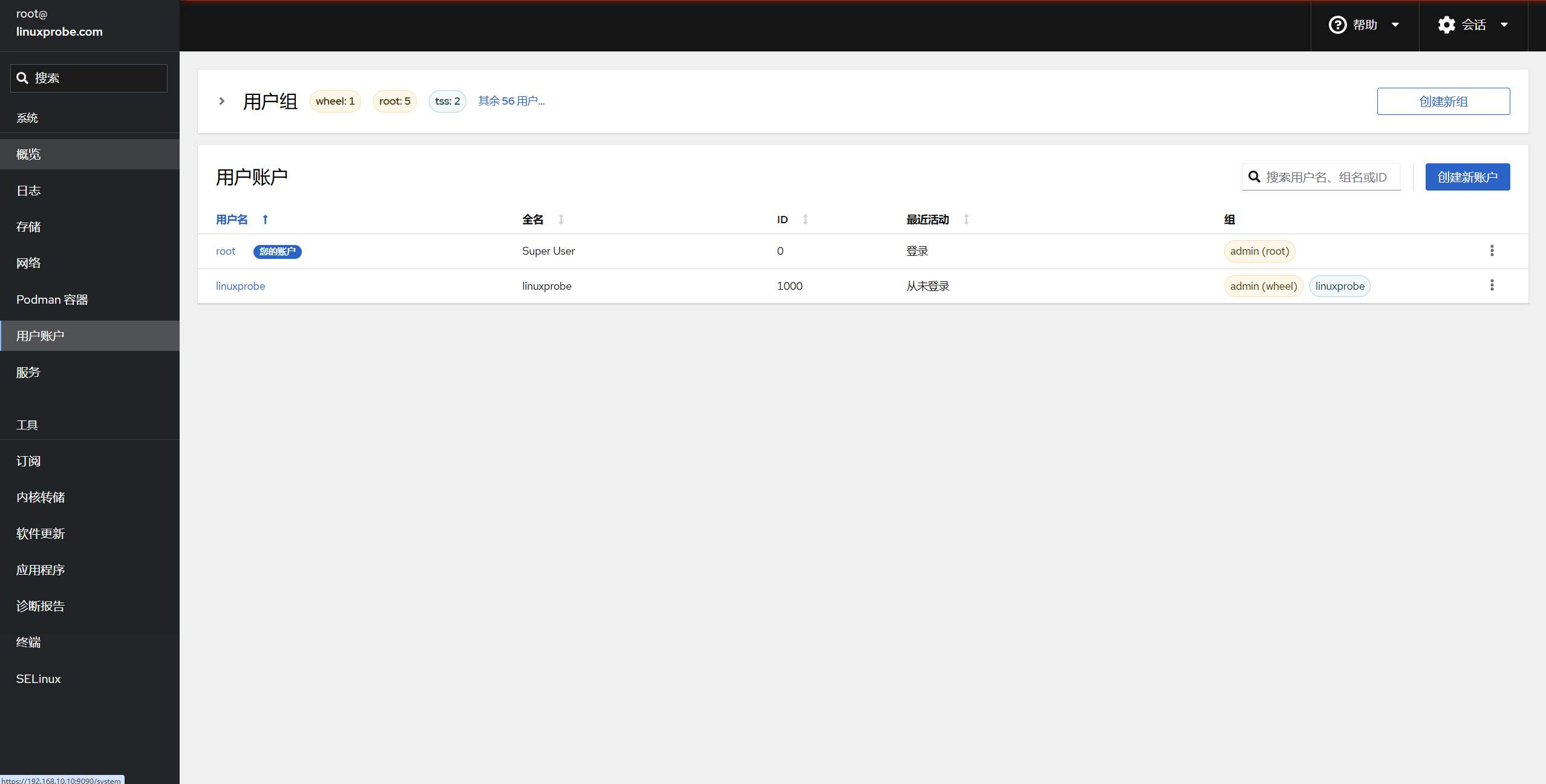 root@linuxprobe:~# vim /etc/cockpit/disallowed-users