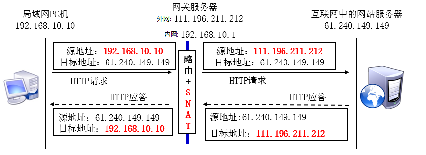 答:SNAT 是一种为了解决 IP 地址匮乏而设计的技术,它可以使得多个内网中的用户通过同一个外网 IP 接入互联网。