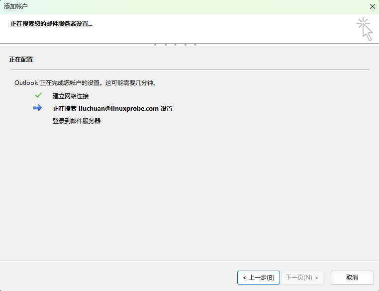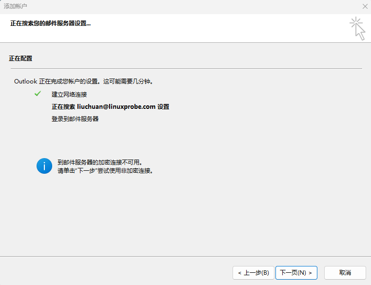 使用 Outlook 软件连接电子邮件服务器的地址 mail.linuxprobe.com 时,提示找不到服务器或连接超时,这可能是什么原因导致的呢?