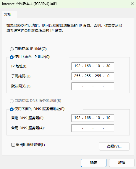 修改好配置文件后记得重启 bind 服务程序,这样电子邮件系统所对应的服务器主机名即为 mail.linuxprobe.com,而邮件域为@linuxprobe.com。把服务器的 DNS 地址修改成本地 IP 地址,如图 15-3 所示。